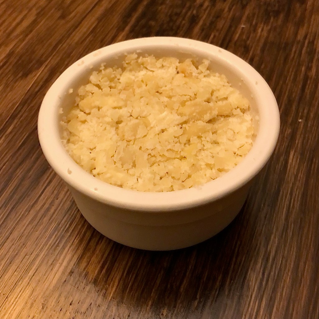 After squeezing the paste in a clean towel to get rid of some liquid, I transferred it to a hot pan and slowly added in the wine. Something… happened… something scientific, I think. The wine bubbled and absorbed and the paste got the slightest bit slimier and softer. The unseasoned goo went straight into a ramekin. After cooking the seasoned ball of goop, I potted it and topped it with dried dill, rosemary, and basil. A few hours later, the “cheese” was ready.